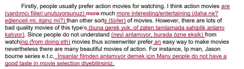 “bu yazıyı görecek herkese tek bir tavsiyem var. 1 essay alın ve yollayın. feedback alınca zaten diyeeksiniz ki sınava kadar ben bu hocayla ilerleyeceğim. tüm içtenliğimle söylüyorum okulda hiçbir hoca bu derece ayrıntılı ve kaliteli bir feedback vermiyor. aynı zamanda hocamız sitesinde genel essay feedback örnekleri paylaşmış. hem de baya var. bunu indirip tek tek okumak da fayda var. oradan da hatalar doğrular çıkararak hata defterine ekledim tek tek. özetle bu site ve bu essaykontrol olayı olmasaydı geçeceğime zerre inanmıyorum. çok teşekkür ediyorum hocama.”